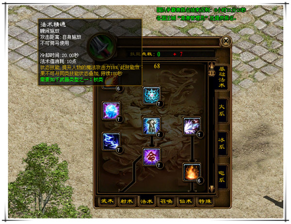 也有人会说基础技能不需要达到68点照样学火法技能,没错,这里学到68点是为了后面能学电法的一个技能。