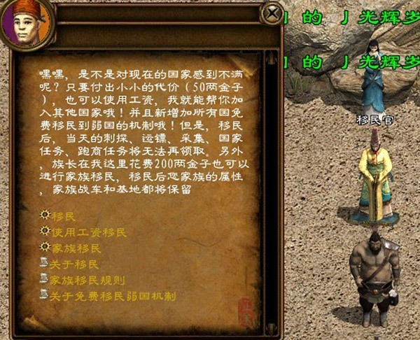 移民后当天的刺探、运镖、采集、国家任务、跑商任务将无法领取。所以尽可能的在移民之前完成这些任务。移民一次后,必须间隔三天,方可再移民。